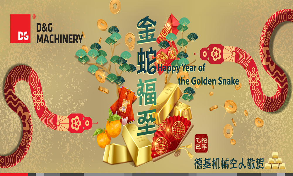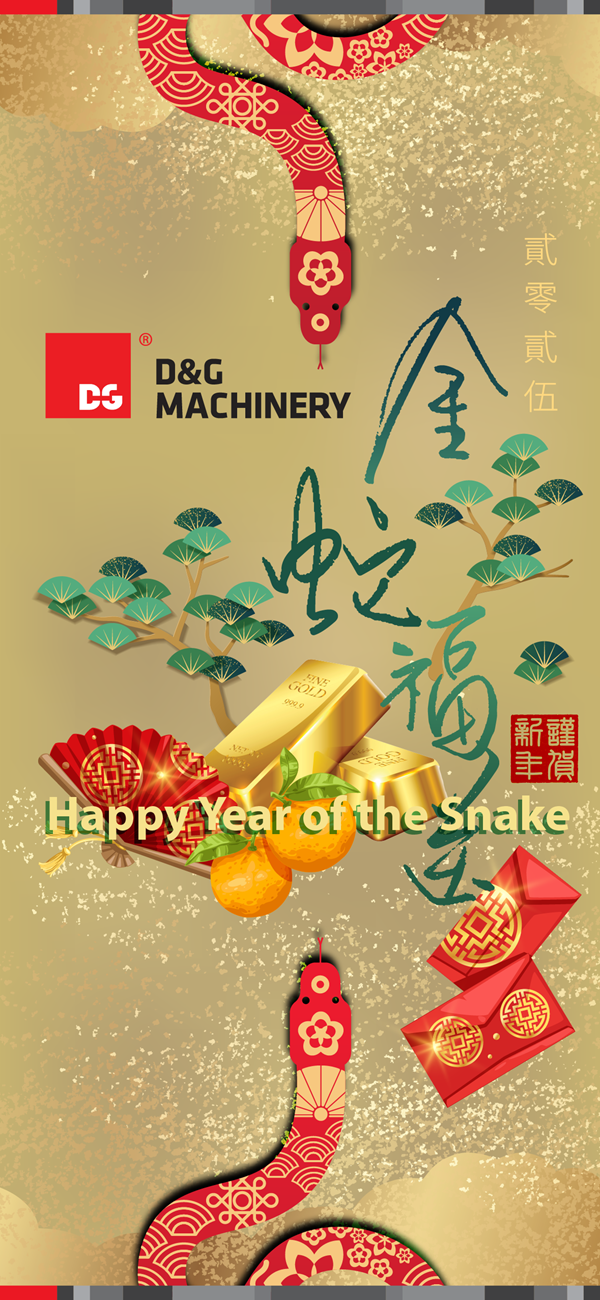 เนื่องจากตรุษจีนใกล้เข้ามาแล้ว D&G Machinery ขอให้คุณมีความสุขและเจริญรุ่งเรืองในปีใหม่! สุขสันต์ปีงู!